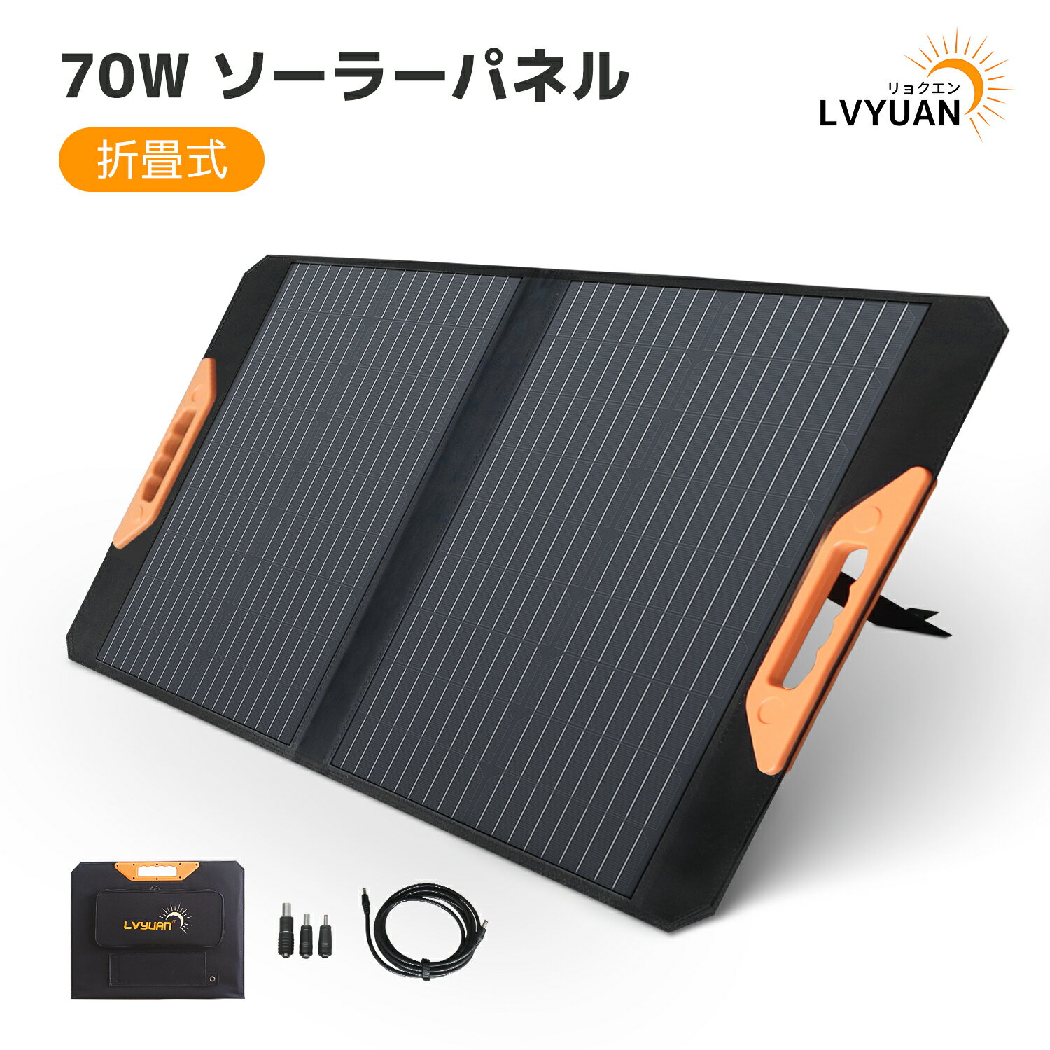 | LVYUAN(リョクエン)70W ソーラーパネル 70W ETFE ソーラーチャージャー 折りたたみ式 ポータブル電源 充電器 QC3.0・PD45W TYPE-C・DC・USB 4ポート出力 スマホやタブレット 充電可能 高変換効率 薄型 軽量 コンパクト 単結晶 防災 3M延長DCケーブル