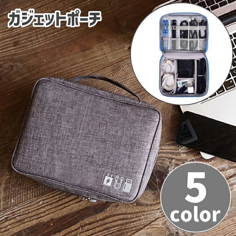 モバイルバッテリーや充電ケーブル、 イヤホンなどをすっきり整理できる多機能ガジェットポーチです。