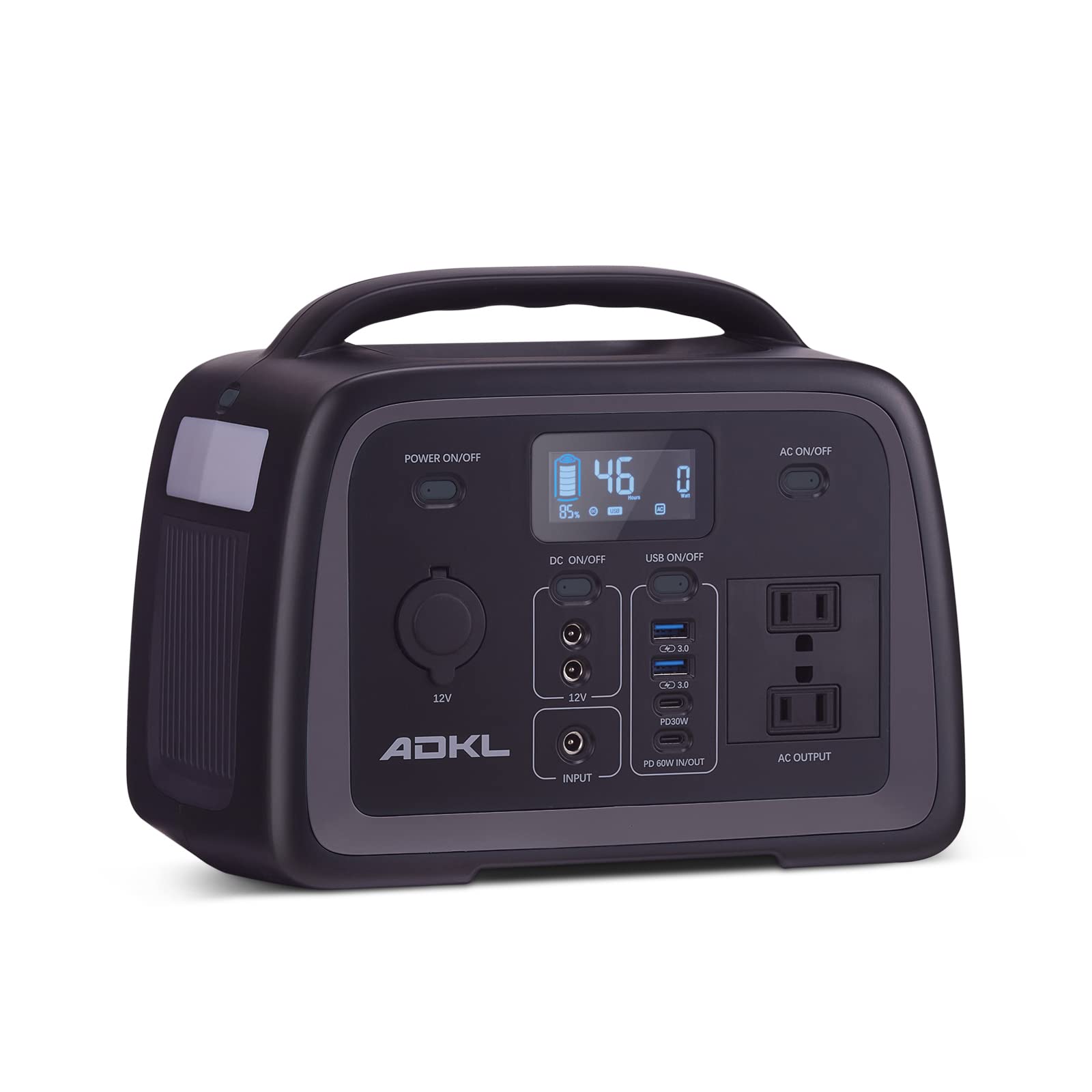 USBポートはPD30W、PD60WやQC3.0急速充電に対応できるポートを含め合計4口、純正弦波ACコンセント2口(50Hz/60Hz切替機能付き)、DC出力ポート2口(12V/10A)、シガーライターソケット1口出力が搭載しています。