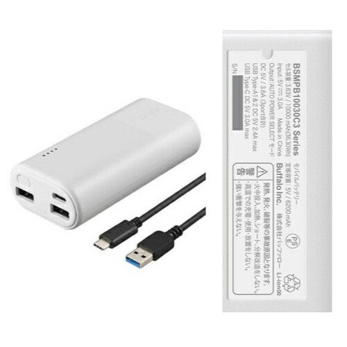 | バッファロー(BUFFALO) BSMPB10030C3WH ホワイト モバイルバッテリー 10000mAh PSE適合